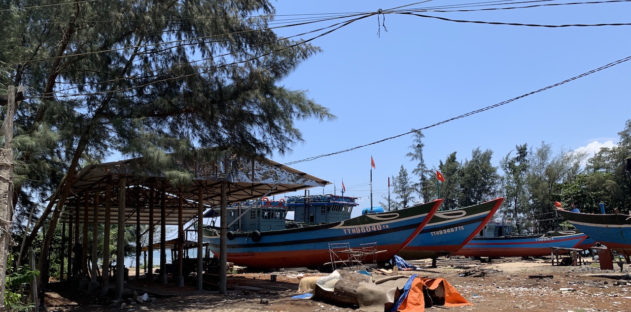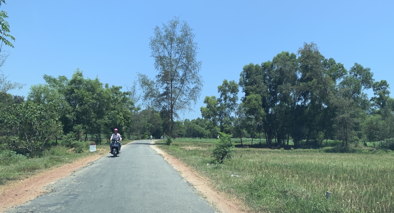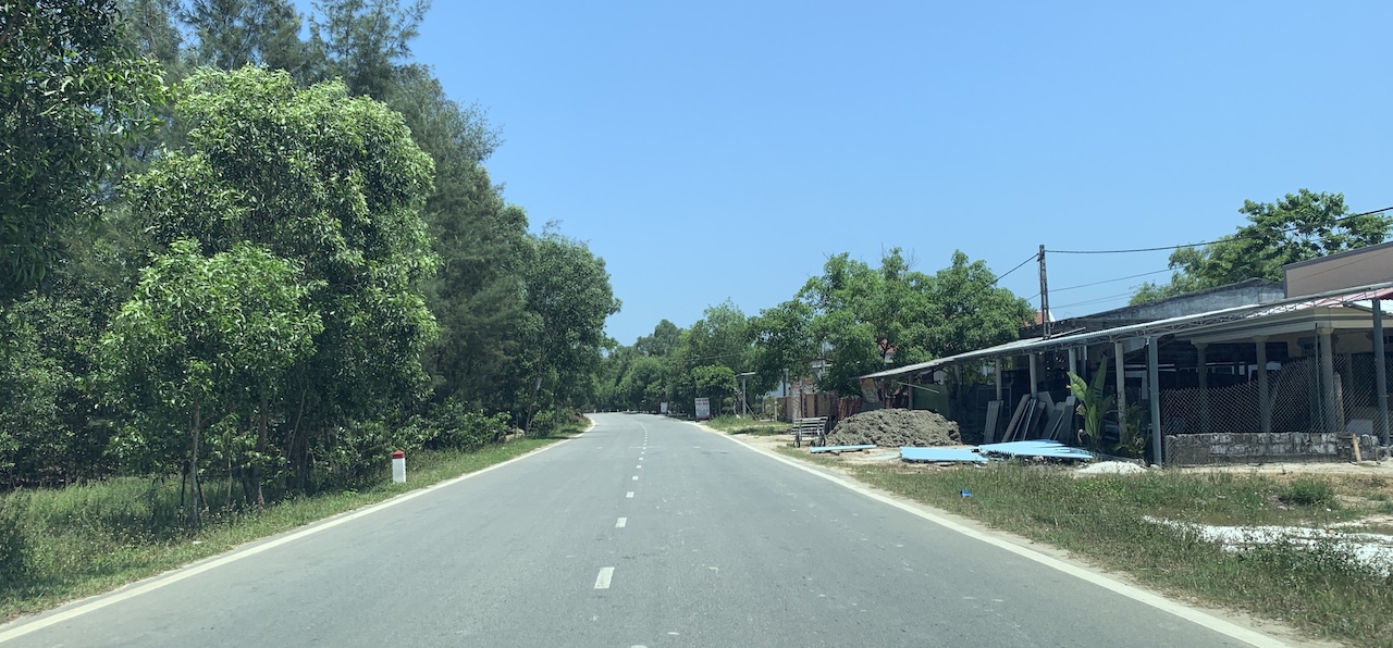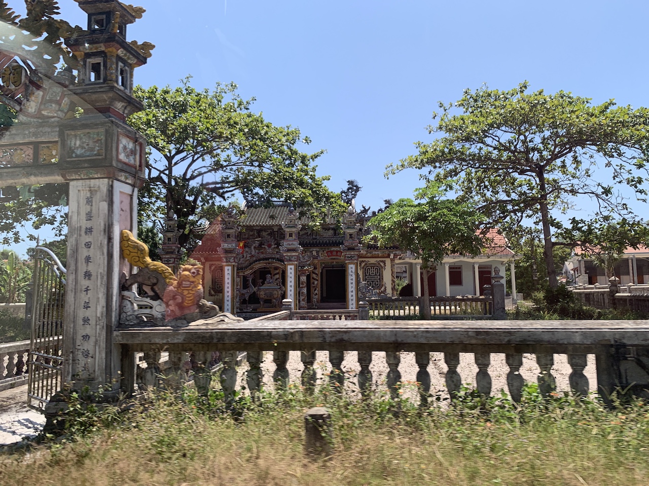 La visite du cimetière à An Bằng effectuée, le chauffeur m’amène à la plage de Thuận An. La route suit le cordon littoral. D’abord très champêtre, le décor va être plus village et bourgade. Les maisons et commerces habituels, mais aussi beaucoup de maisons-autels des ancêtres et également des tombes en nombre. Elles sont de même style mais moins grosses qu’à An Bằng. Le parcours pourrait être le sujet d’une excursion scooter ou même vélo, tant le trajet est agréable. Quelques camions cependant. La route n’est pas en état optimal, quelques sauts et ralentissements. Du coup, pas de photos des autels de famille.