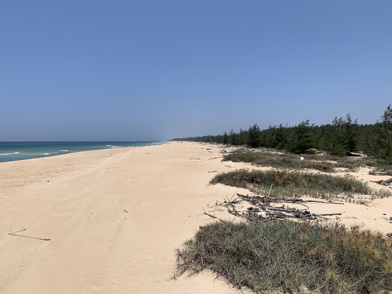 Je trouverai finalement mon graal : le vieux phare français (et aussi un phare Việt récent). Il ne fallait pas s’écarter de la pseudo-route. Le danger ici a été réel. Le sable est tellement chaud que la peau de mes pieds a souffert.