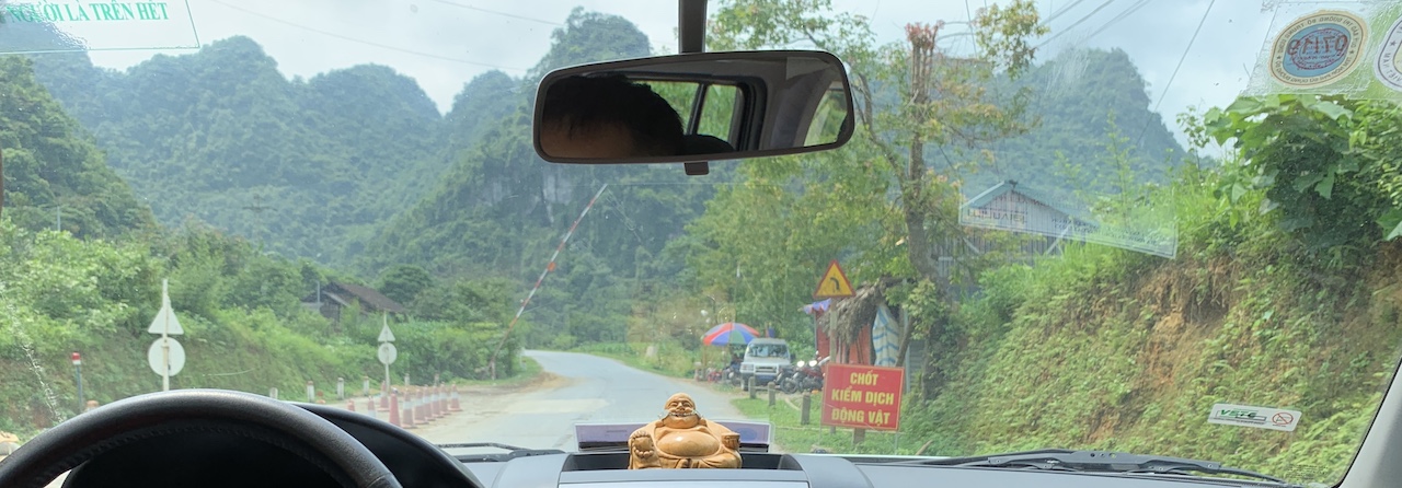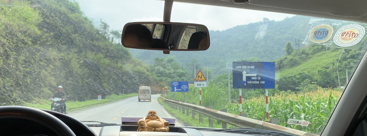 Retour dans la voiture et sur la route… Les paysages restent les mêmes. On passe à Thất Khê puis la frontière chinoise se rapproche. L’on voit de plus en plus de camions de transports. Le Ải Nam Quan, porte historique avec la Chine, est alors tout proche. Entièrement reconstruit. Plus de vieille pierre. Il n’offre plus aucun intérêt touristique, sauf à enjamber une marque sur le sol.
