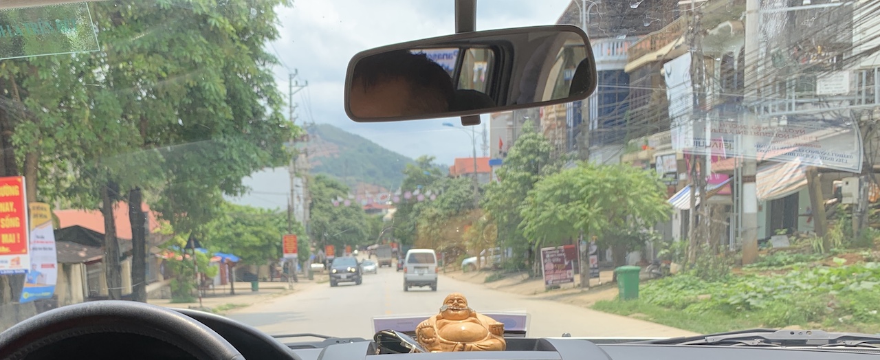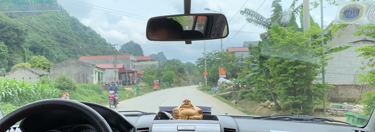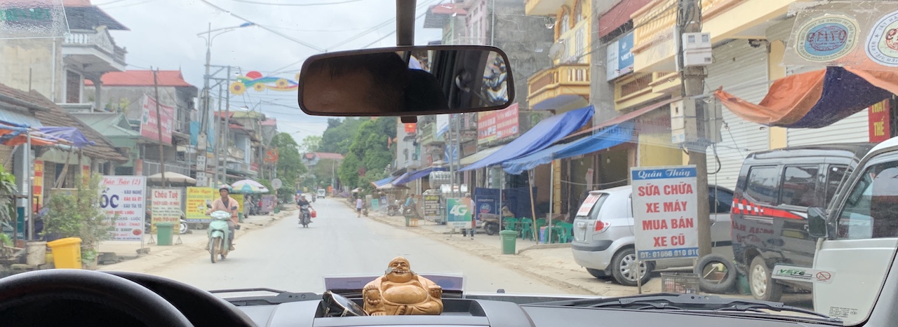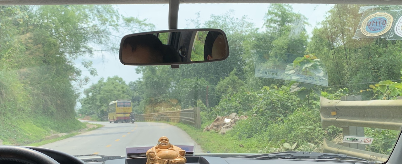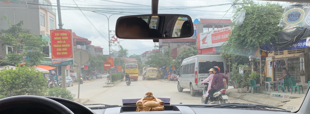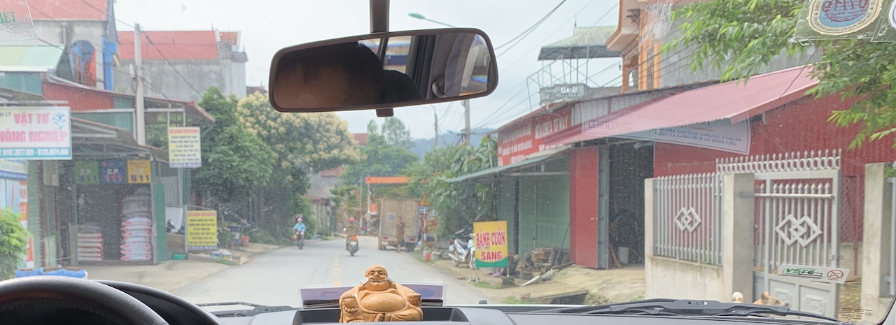 Dans la voiture, Long m’explique que le Việt Minh était au début un regroupement de partis, pas seulement le parti communiste, mais qu’ensuite des purges ont été faites et cette organisation n’a plus eu qu’une seule couleur. J’ai longtemps confondu Việt Minh et Việt Cộng, mais ce n’est pas la même temporalité, ni la même localisation, bien qu’il y ait une continuité politique.